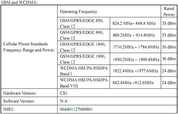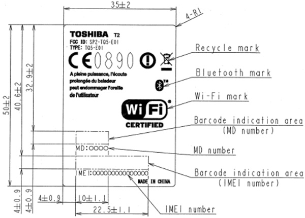 As well as the usual quadband GSM/EDGE there's UMTS/HSDPA – though sadly not with US band support, it seems – along with WiFi b/g, Bluetooth 2.0+EDR and GPS. There's also a basic outline drawing to show where the TG02's approval label will go, that suggests the curvy form-factor we saw in previous leaked photos may still be coming.
