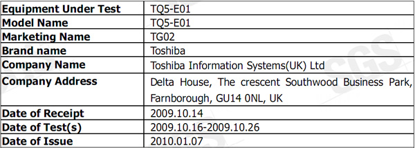 Toshiba TG02 Clears FCC, Headed To MWC 2010?