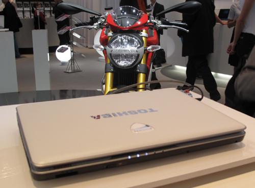 We're sure that Toshiba could announce some more things, but this is getting ridiculous. This time around, we've got a laptop, and one that's sure to attract some onlookers, if for anything else because it's Ducati-branded. Getting a name-brand, on top of the manufacturer's name brand, isn't a new practice, especially for company's hoping they can get an extra buck or two from it. Although, it is nice to see an actual Ducati right next to the laptop. It definitely gives the little piece of tech a more attractive appeal.