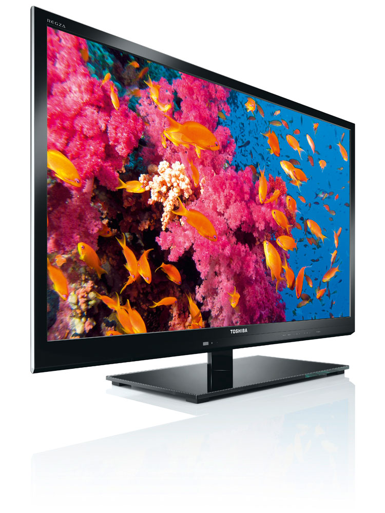 Toshiba has pulled the wraps off several new TVs today including the 55ZL1. This set his the first TV to use the CEVO-Engine with a 7-core processor and DRAM inside along with a co-processor for special picture enhancing algorithms all in search of the ideal image. The set has a 16:9 aspect ratio and full HD resolution with LED backlighting and support for 3D. The set has automatic calibration and can convert 2D content to 3D. The set will be offered in screen sizes of 42", 46", and 55" and they have HDDs that can be mounted to the rear of the set.