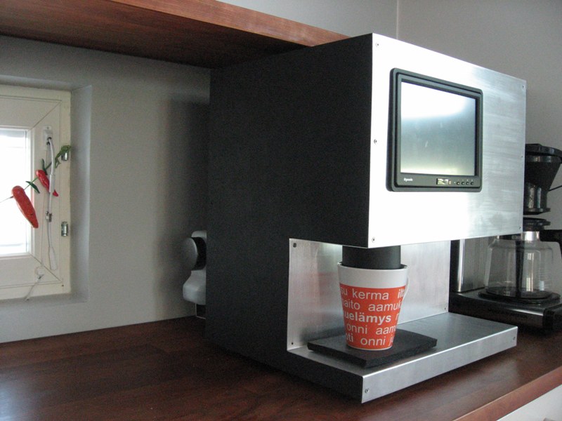 If you're not a complete caffeine-head then you might not realize that there's a furious coffee-machine modding scene out there, determined to tweak the best out of their (often expensive) home espresso machines. Sometimes you can't find a good starting place, though, and then the only option is to build your own machine from scratch: that's exactly what Reko Mäenpää did, integrating a full computer, 8-inch touchscreen, WAP-portal and more.