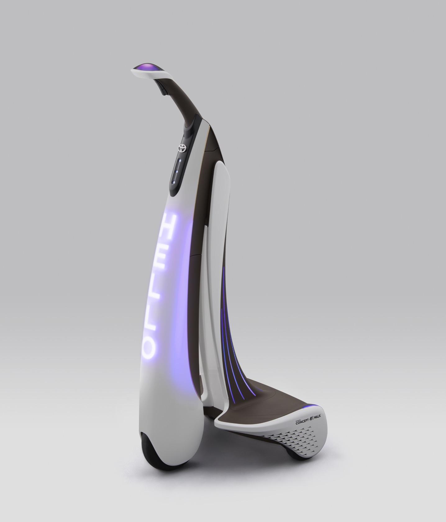 That same principle carries down to the smallest member of the Concept-i family. The Toyota Concept-i WALK is a standing mobility vehicle, with three wheels and a variable wheelbase to adjust stability. It can turn fully in a shorter distance than the scooter's length – less, Toyota points out, than a typical person's stride – while the width is less than shoulder-width.