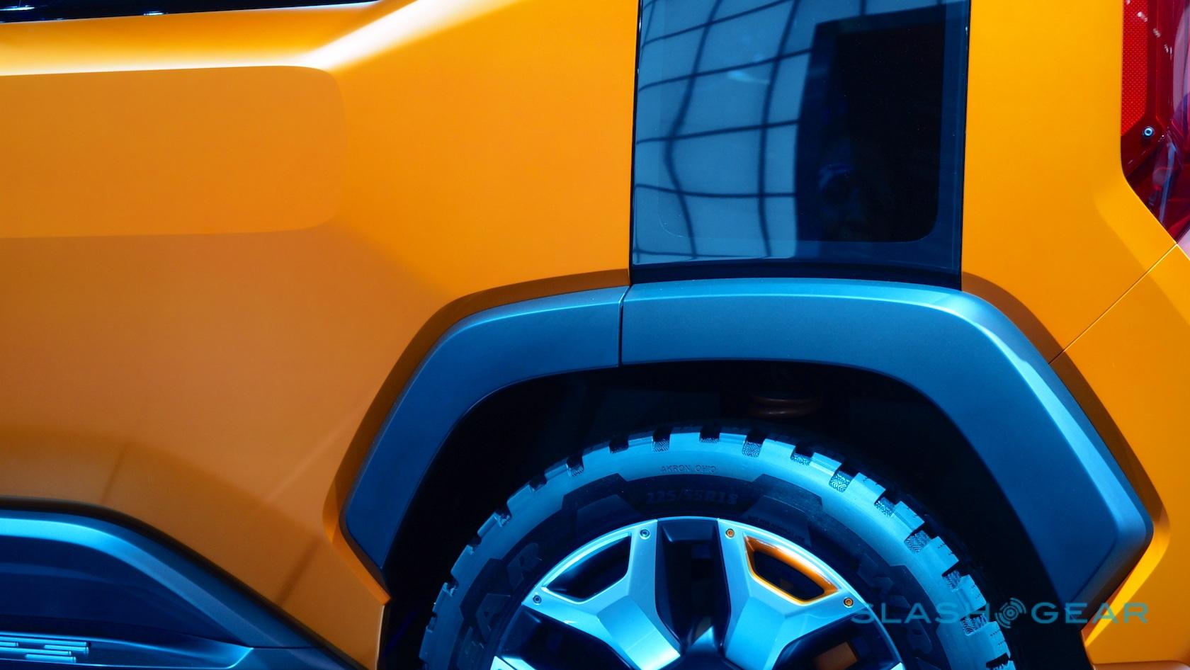 There's a GoPro camera built into one of the side mirrors, for instance, and a sleeping bag that doubles as the center front armrest. The interior lights can be pulled out to serve as campsite lighting; similarly, the stereo is removable for use as a portable speaker. Even the rear armrests have handles that are also water bottles.