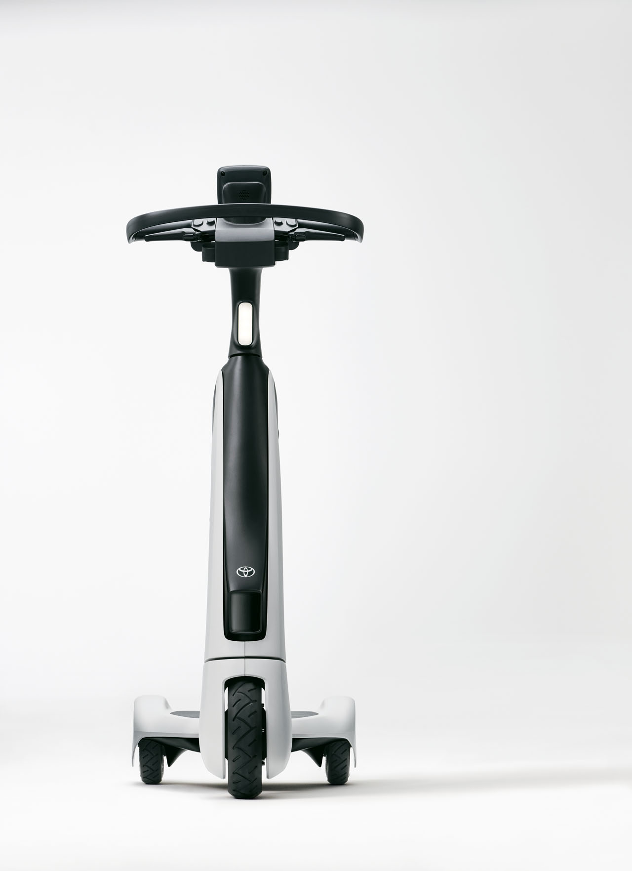 Its design allows the scooter to take up a similar amount of space as a single person and travels at typical human walking speeds. To help prevent collisions with pedestrians, if the rider isn't paying attention, it's fitted with collision and obstacle avoidance functions. Toyota envisions the scooter being usable by those who have difficulty walking or users who have to walk a lot, such as security personnel.
