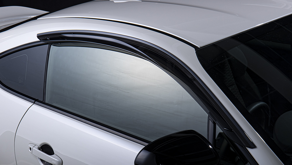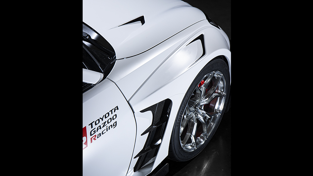 The other car is a modified version for street racing called the Toyota GR 86 GR Parts. Compared to a stock GR 86, the streetfighter model has a larger front lip, new side skirts, a custom rear bumper, and a gorgeous ducktail rear spoiler. We're not sure about the window visors and that tacky fuel door cover, though.