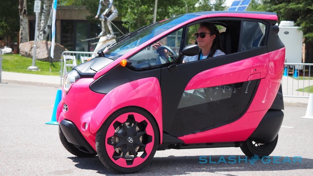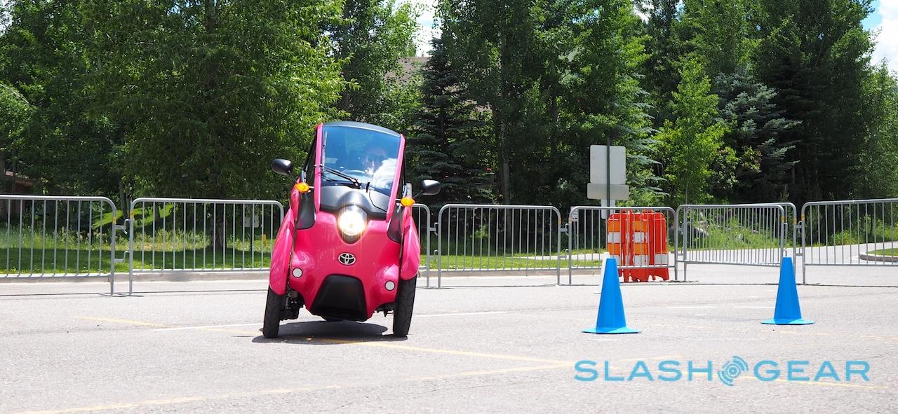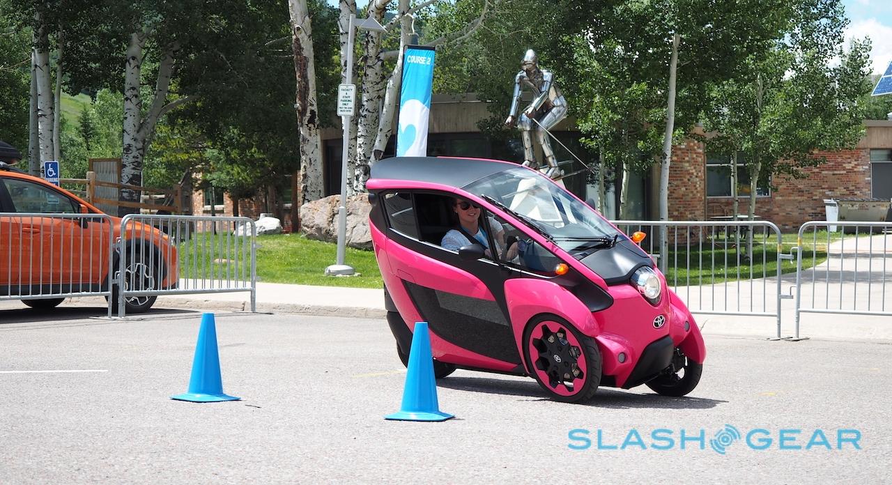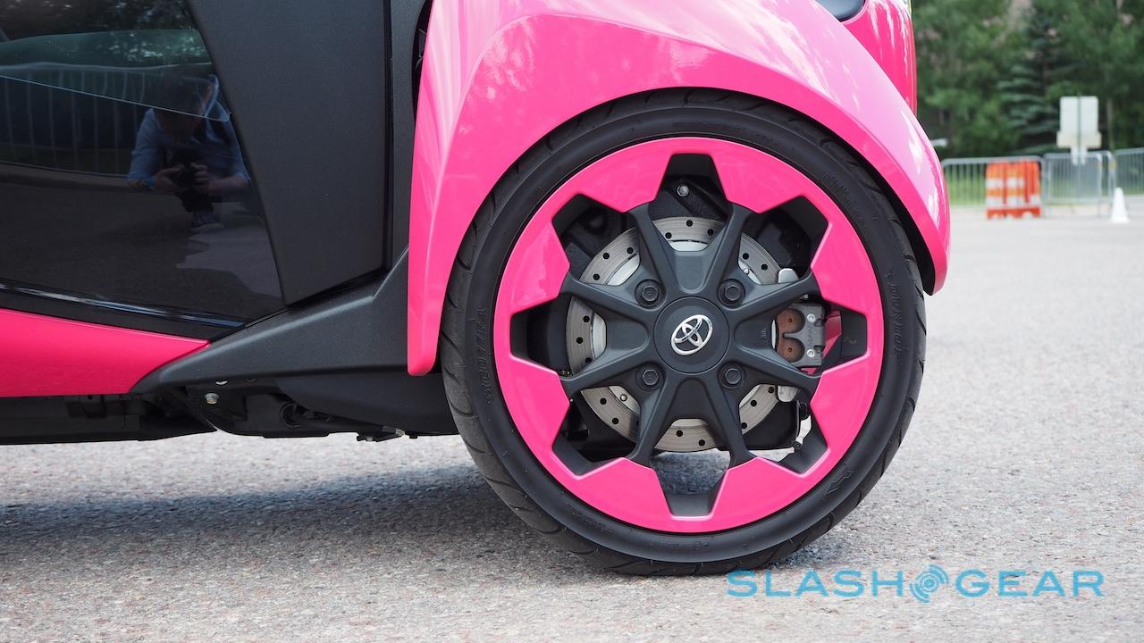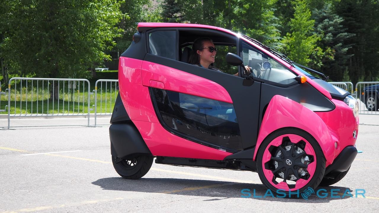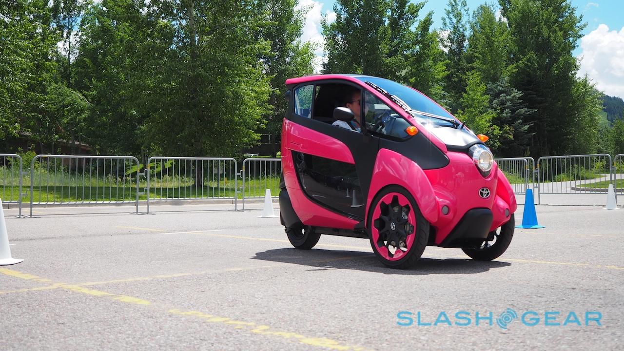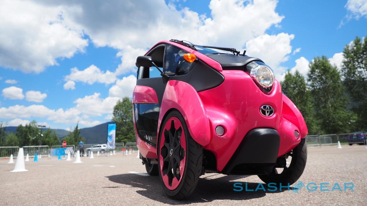 "You're not going to topple over," I overhear a patient Toyota rep explaining to a nervous i-ROAD test-driver, "just have fun." Two minutes later, that same anxious pilot is throwing the tilting trike around a fiercely twisting course of cones with gleeful abandon, the electric motor whirring eagerly while the front wheels hinge up and down like the claws of a praying mantis. A bright pink praying mantis, at that. Smiles-per-mile, then, the i-ROAD is ahead of the pack even given its minimal 30 mile range. Problem is, it's not individual drivers that Toyota has to convince.