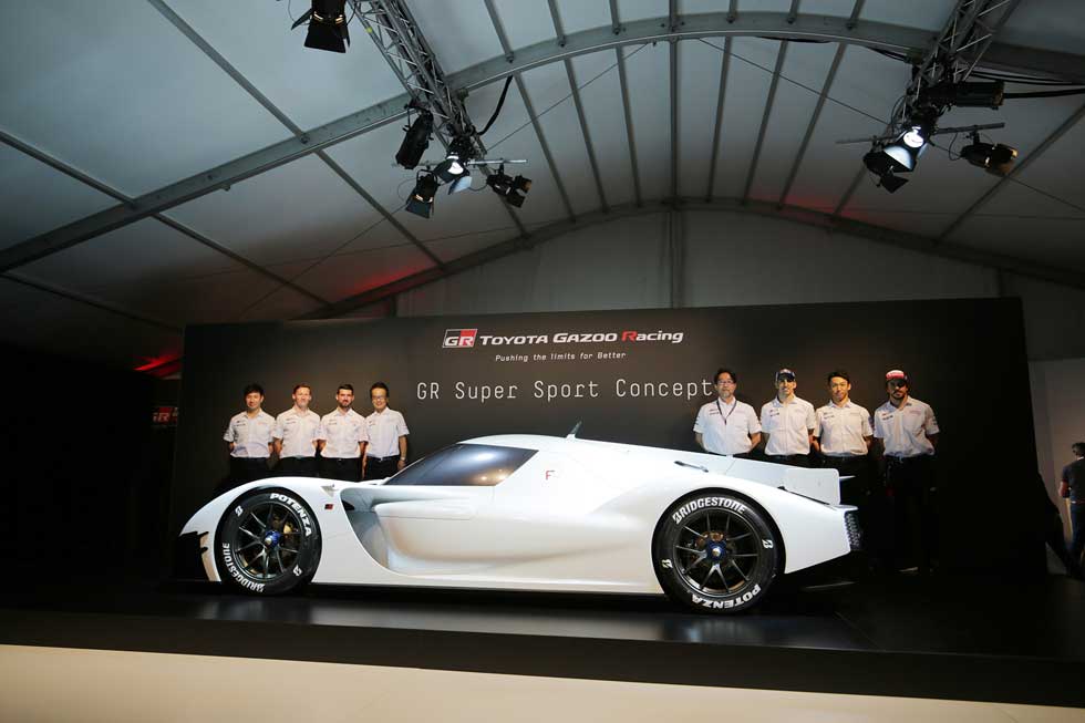 GR Super Sport Concept gets power from a twin turbo V6 engine with the Toyota Hybrid System-Racing (THS-R) integrated. The gas engine and hybrid system combine for 1000 DIN hp. The car shares its powertrain with the TS050 Hybrid LMP1 race car.