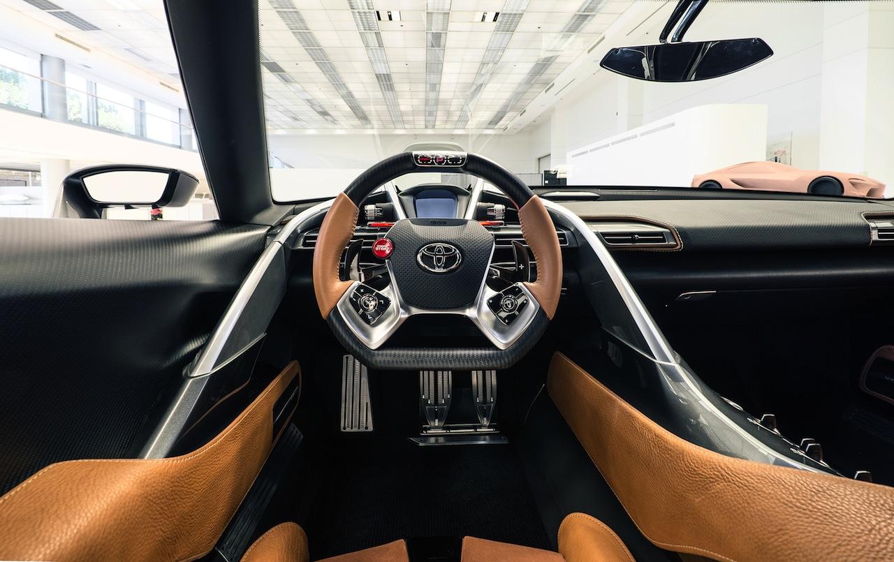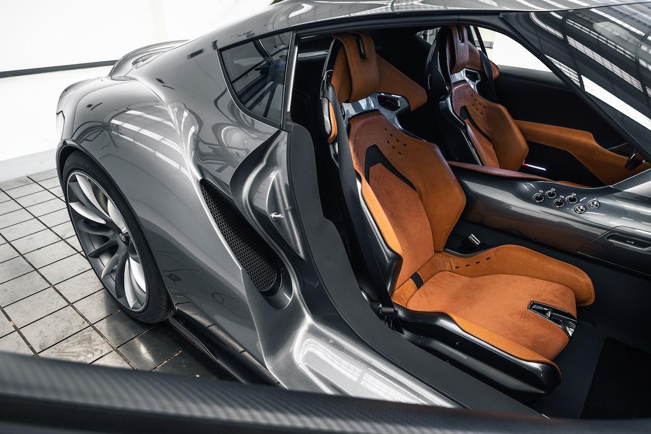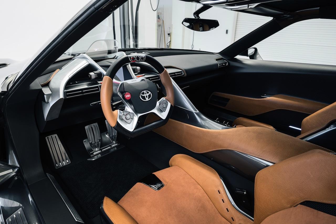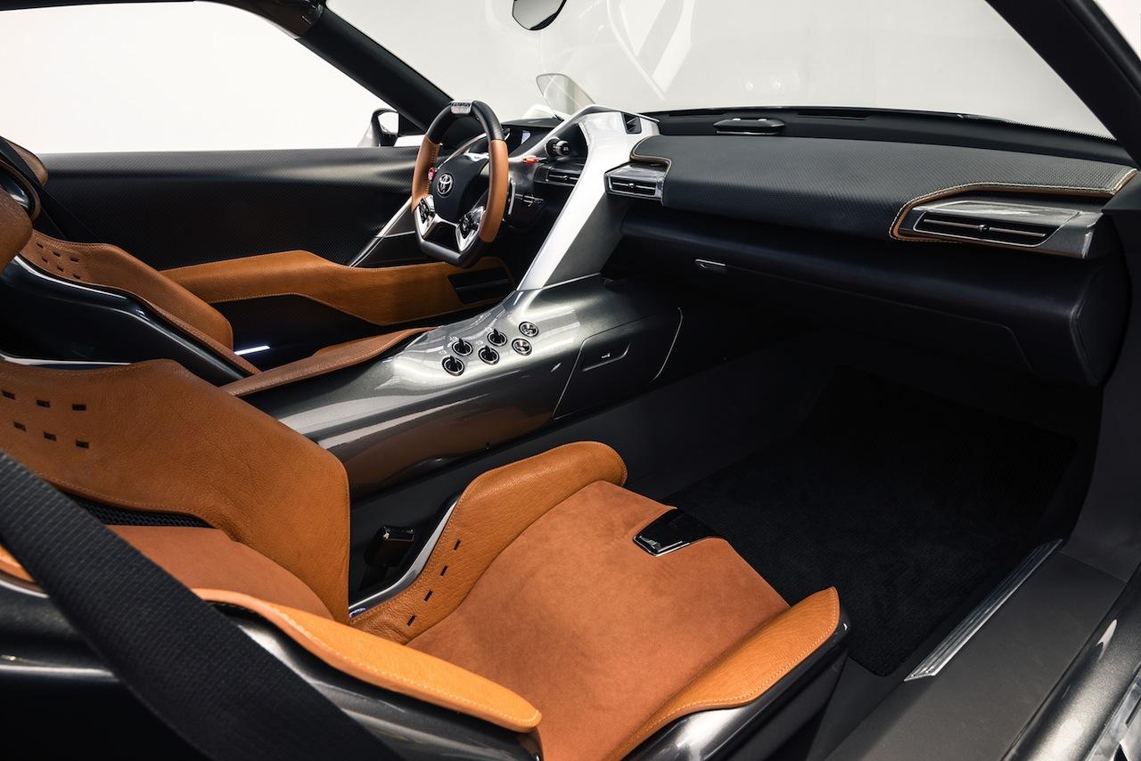So, where the original – the FT-1 Gran Turismo – was bright red with raw metal sections, the new car is perhaps more harmonious in its color scheme and materials. What were red painted edges in the first are now brown, to better blend in, and match the saddle-leather interior.