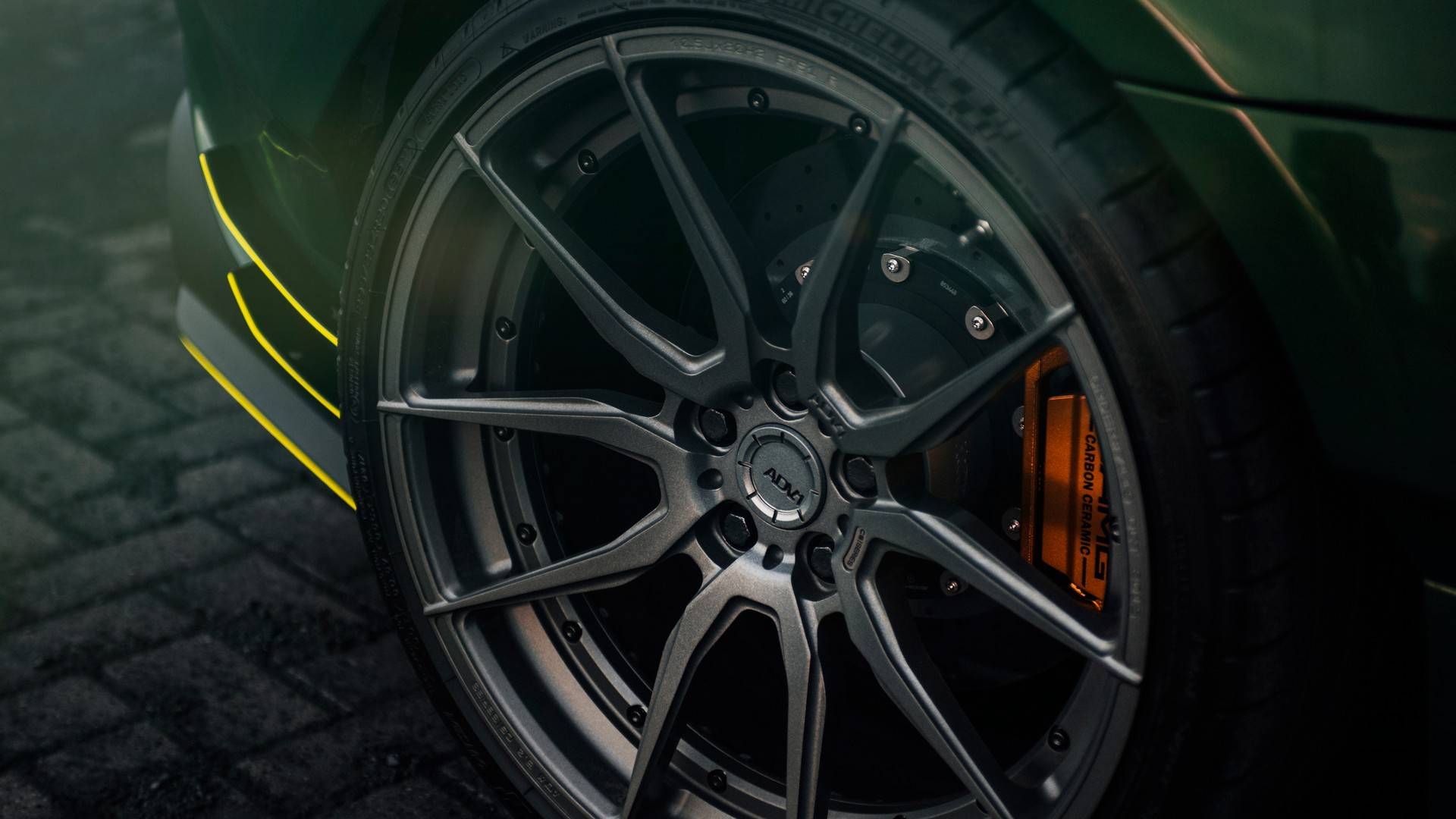 The green color is nicely offset by bright yellow accents in the form of pinstripes running around the car. The wheels are 20-inch units by ADV.1 wheels and the wheels are fitted with sticky tires. The suspension is modified with KW coil springs and H&R wheel spacers to allow those wider wheels the clearance they need.