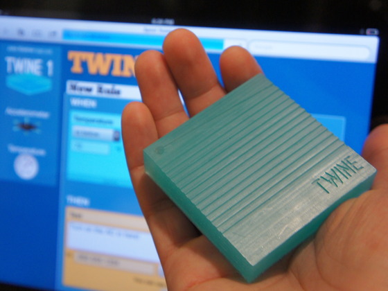 Google isn't the only company working on the "internet of things," with a Kickstarter project called Twine looking to release compact WiFi-enabled sensors that can get web-dumb devices online. A 2.5-inch square block packing WiFi along with temperature and vibration sensors, Twine uses a simple web app called Spool to piece together routines like sending out an SMS when a certain temperature is passed, or tweeting when your dryer has finished spinning.