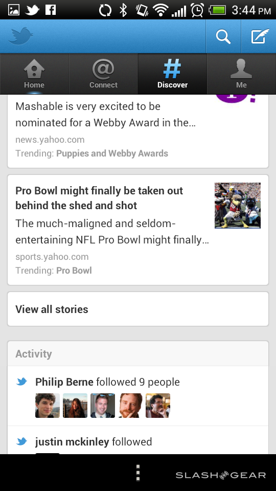 As it stands, Twitter now has a brand new set of discovery tools. This update allows you to see your Activity on both the iPhone and Android versions of the app, this a stream of updates including Tweets you've made that are either favorited by friends, colleagues, and people you've never heard of before. Activity is a section you'll find at the bottom of your Discover tab – tap in!