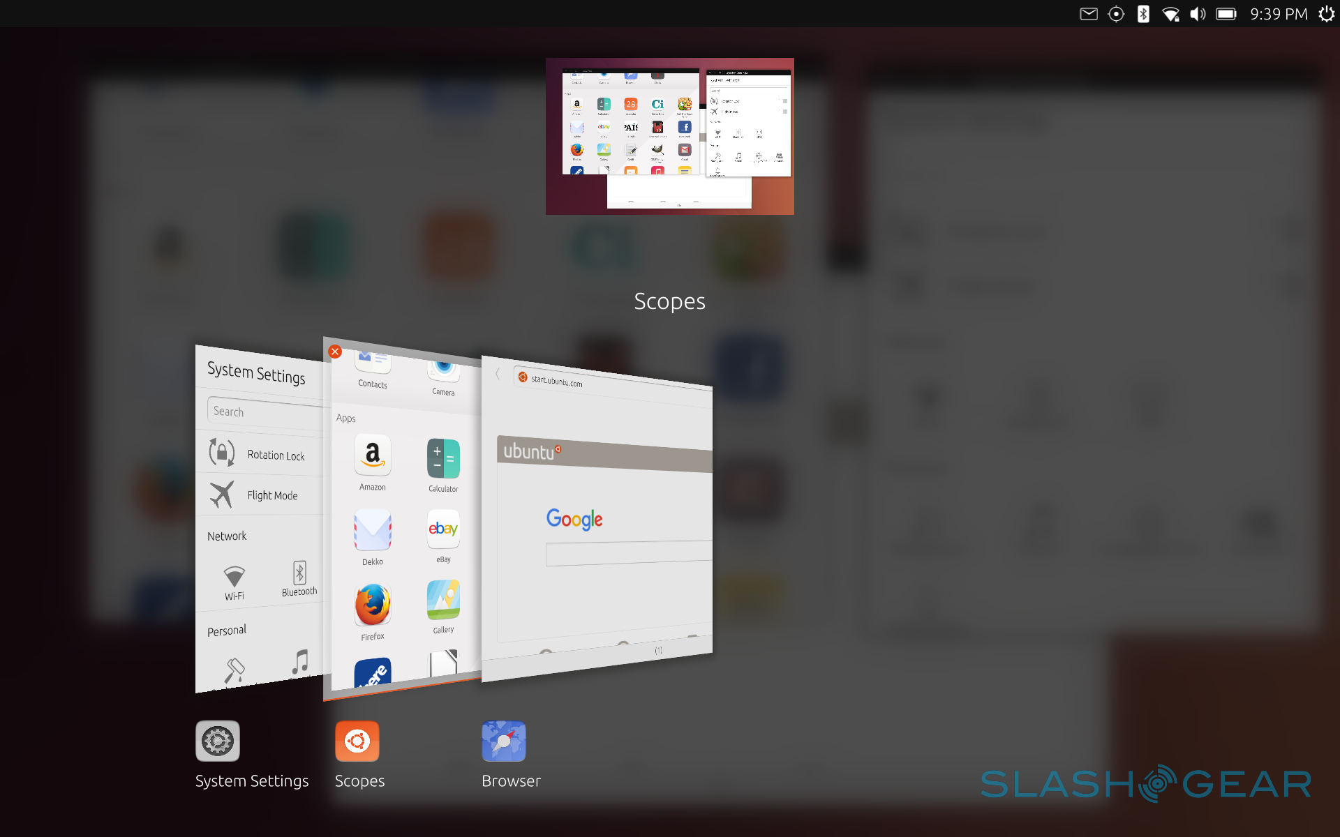 Swiping from the edges of the screen brings up different actions. A short swipe from the left edge reveals a side dock for putting shortcuts to apps. It also has the Ubuntu icon which takes you "Home". A longer swipe from the left immediately takes you to the Scopes windows, which is practically your home screen. More on that later. Swiping from the opposite right edge is all about switching through apps. A short swipe simply switches you back and forth the most recently used apps. A longer swipe, on the other hand, shows all opened apps in a list, allowing you to pick through them or close the ones that you don't need to have running. This is something you'll want to do regularly in Ubuntu Touch.