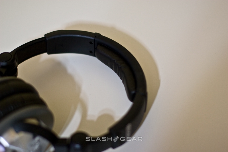 Rather than exiting from both ear cups, the cable snakes up through the headband from the right and hangs only from the left. At around 3m it's easily long enough to reach into a bag or tucked-away pocket, and there are some seriously over-engineered stress relief protectors at both the headphone and the plug ends. The normal 1/8-inch jack is fixed and gold-plated, and has screw knurling for the supplied 1/4-inch adapter. We much prefer this over the regular push-fit adapters.