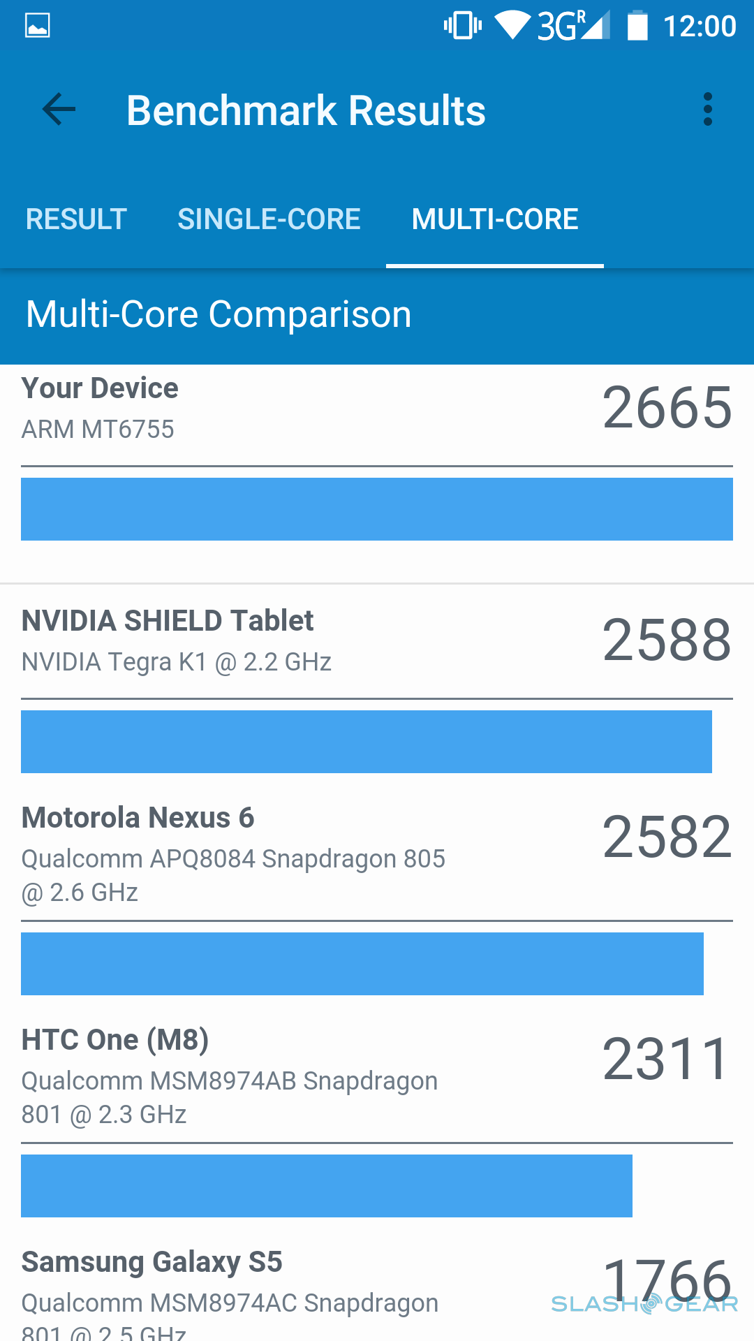 The UMi Super's performance on Geekbench and AnTuTu benchmarks were quite impressive for a 2016 mid-ranger. On Geekbench, its multi-core score of 2665 outperforms even the NVIDIA SHIELD Tablet's Tegra K1 chip as well as the Nexus 6.