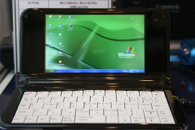 Size is just 158 x 94 x 19mm, putting the MID in line with the Aigo and Gigabyte MIDs, but the clamshell form-factor more closely resembles Fujitsu's UMPC range. Of course, the UMID device lacks a convertible swivel hinge, so although it has a touchsceen you can't use it in slate-orientation.