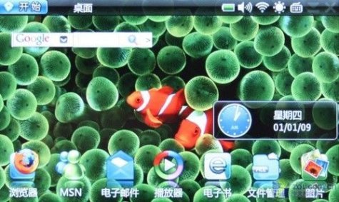If there's a drawback, it's the MID specs: a 624MHz Marvell PXA310 processor, 128MB of memory and a 4GB SSD (though you can hook up a USB hard-drive). No GPS, but there's a cellphone module in there for making calls. The GUI seems to have borrowed a lot from the iPhone and Nokia's Internet Tablet range, but is at least finger-friendly; preloaded apps include Firefox, GMail, a media player and MSN Messenger.