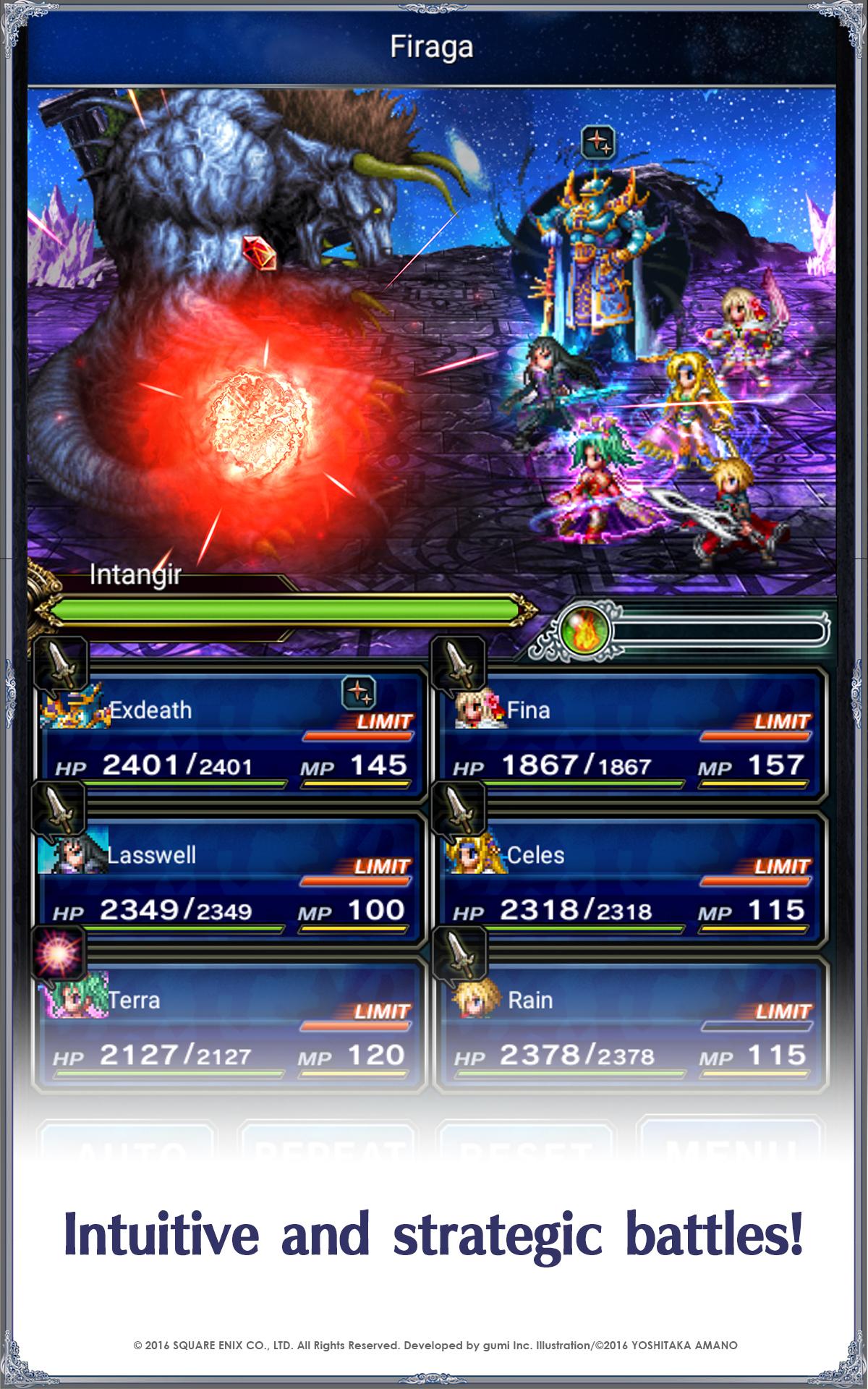 The title, which is somewhat unusual for a Final Fantasy game, is somewhat an amalgamation of Final Fantasy and Brave Frontier, which isn't surprising as the latter's publisher A-Lim is also behin Brave Exvius. This Final Fantasy title even takes some gameplay cues from Brave Frontier, particularly its mobile-oriented controls and mechanics.