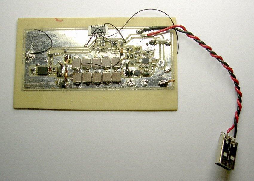 "The basic idea of the USB drive is quite simple. When we connect it up to the USB port, an inverting DC/DC converter runs and charges capacitors to -110V. When the voltage is reached, the DC/DC is switched off. At the same time, the filed transistor opens. It is used to apply the -110V to signal lines of the USB interface. When the voltage on capacitors increases to -7V, the transistor closes and the DC/DC starts. The loop runs till everything possible is broken down."