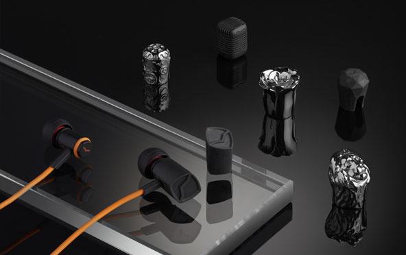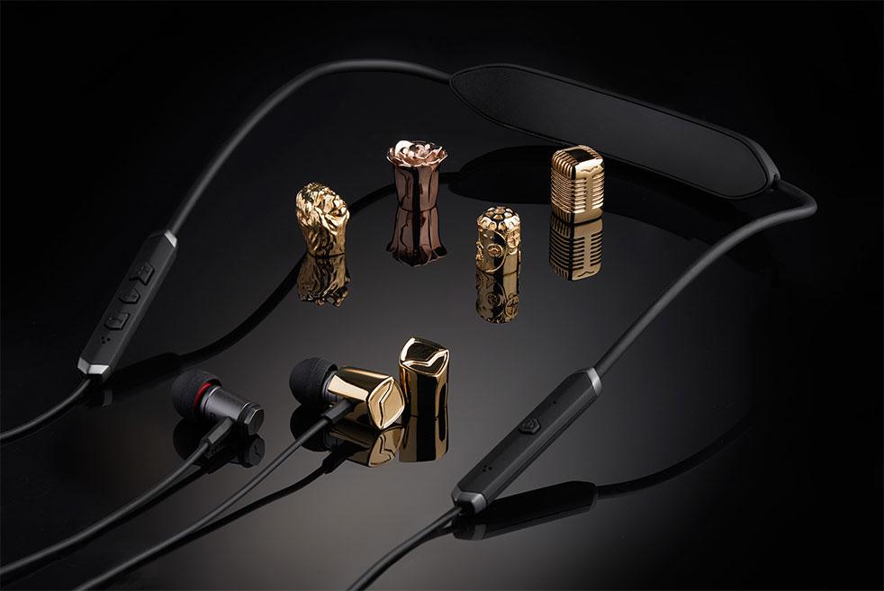 The headphones have sweat-resistant technology and sport fins for hybrid sport performance and available jewel-grade 3D printing customization of the in-ear caps. Those custom caps are called RemixRings and can be had in Milanese designs Steam Punk, V-Moda logo, Lion Head, and other designs. Cap materials include platinum starting at $7,500, 14k gold at $2,500, gold plated at $250 and HD acrylic for $40 or $20 when purchased with the headphones.