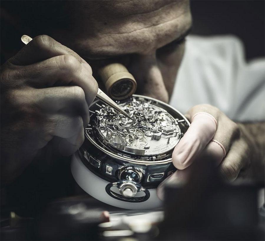 The watch has different chiming complications that can be silenced. The chime has five gongs and five hammers that plays the same tune Big Ben plays. The watch has a built in alarm that can be silenced, a power reserve indicator, and a crown position indicator. You need some very large pockets to carry this watch. This watch was commissioned by one of the top collectors in the world and is the result of eight years of research, development, prototyping, manufacturing, and assembly.