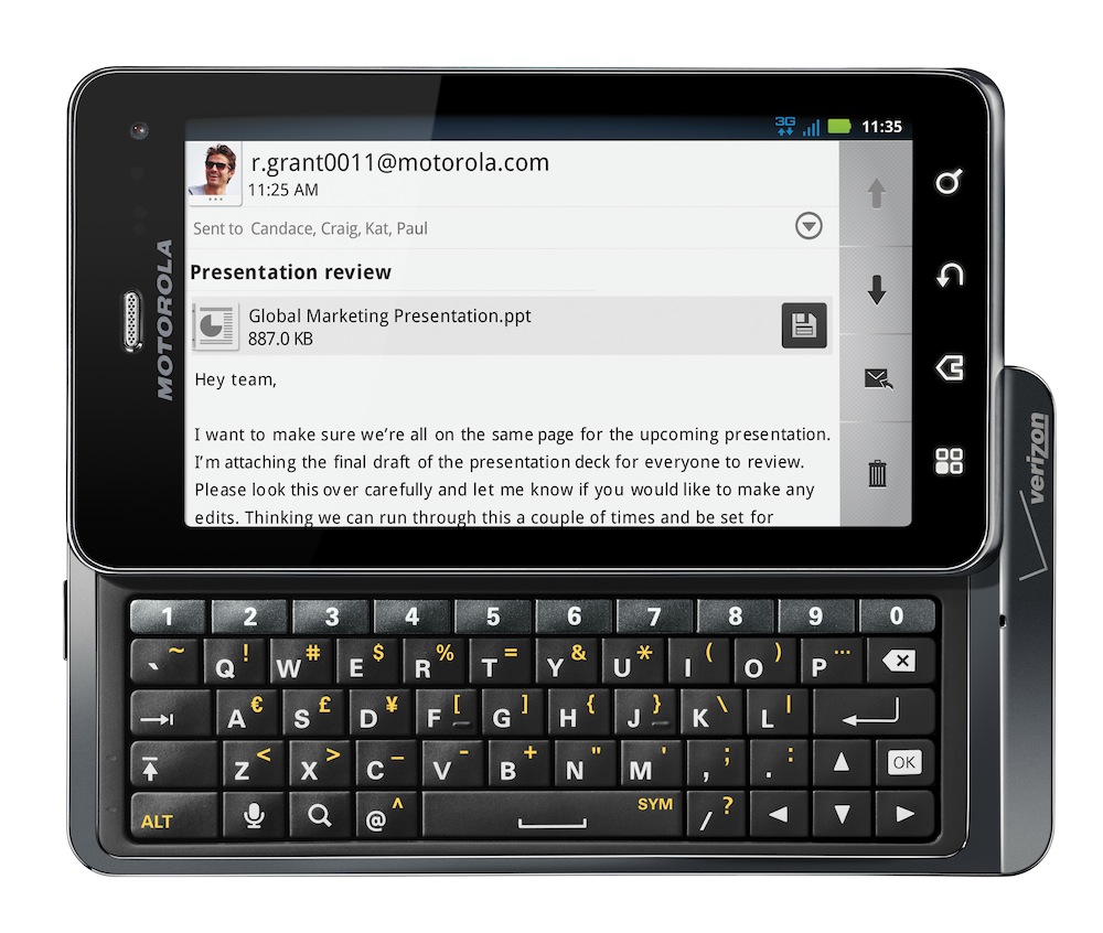 A front-facing camera, smart dock which allows the DROID 3 to open different apps depending on whether it's at home, at the office or in the car, and Flash Player 10.3 support round out the key specs. The Verizon DROID 3 by Motorola is available online now and in-store from July 14, priced at $199.99 with a new, two-year agreement.