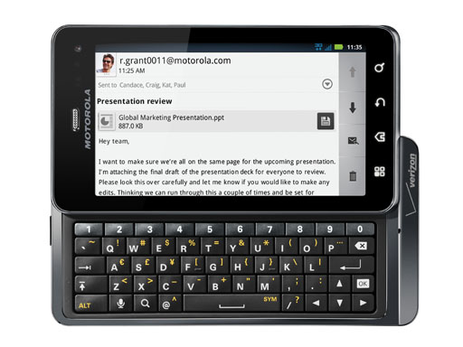 There's HDMI screen mirroring, together with Citrix GoToMeeting and Receiver for enterprise users wanting to log into online meetings or their work desktop while on the move. Motorola also preloads QuickOffice, and there's various enterprise-friendly stuff like device and SD card encryption, complex password support and remote data wiping of both the DROID 3 and its SD card.