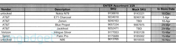The Nokia E71 will arrive on April 1st, with the LG Zenon (previously known as the Xenon) following on April 10th, both with AT&T. Meanwhile the Palm Pro hits Sprint on March 15th.