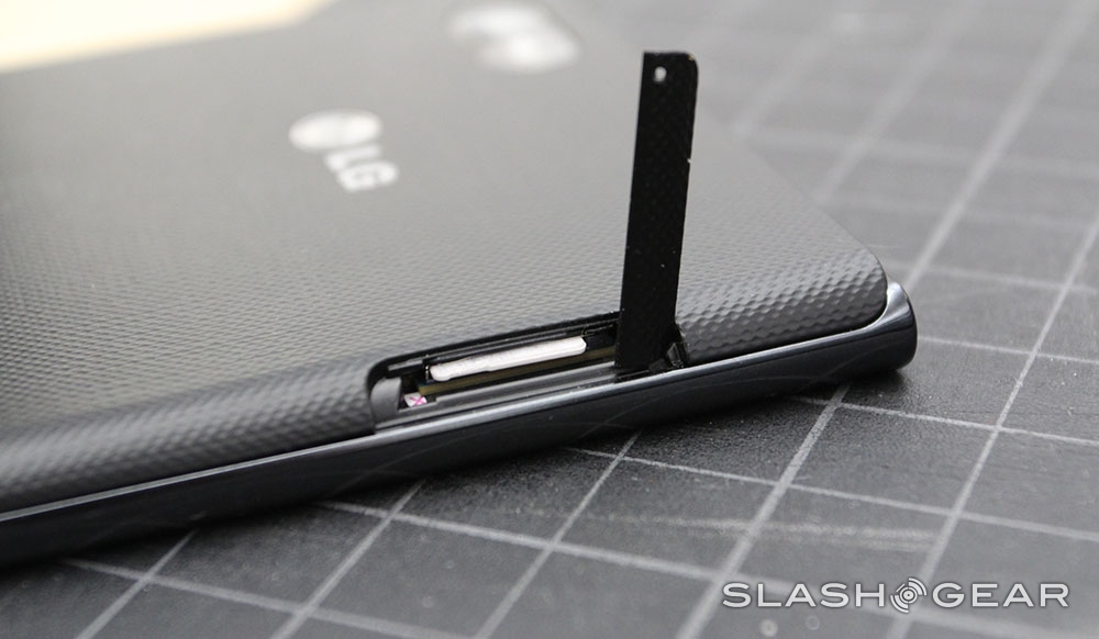 The back of the device is made of a soft plastic that's almost rubbery, this making a great case for the idea that this could be a one-handed device – but you're certainly not going to get away with doing much other than scrolling with one hand unless you're a giant. Two-handed operation here feels much more natural. If LG's aim here is to replace your tablet – and it is – then they're doing it right.