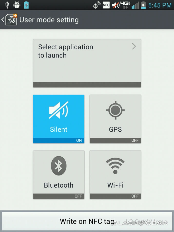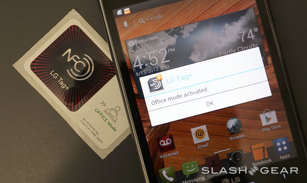LG has for some time now been working to provide the user with a unique ability – coming from a manufacturer, that is – to switch between user modes. You can use the LG Tag+ NFC stickers to activate your different modes, or you can simply do it yourself with a couple of taps. The LG Intuition comes pre-set with Car, Office, Sleep, and User modes, each of them bringing you a standard setup for their respective environments.