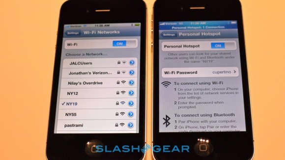 We already know the iPhone 4's feature set: a 3.5-inch display, with Apple's Retina Display. It has Apple's A4 processor inside, clocked at 1GHz. And it's running Apple's latest version of iOS, which now includes multitasking in Apple's creative fashion. However, the device does not feature 4G LTE, as many had imagined it would. There is a section in the settings of the device that will let you turn on a 3G mobile hotspot feature. The Verizon iPhone 4 will have 16GB or 32GB of memory for apps, videos, games, and music. On the back, a 5MP camera will let you take high resolution images and video. On the front, a VGA camera.