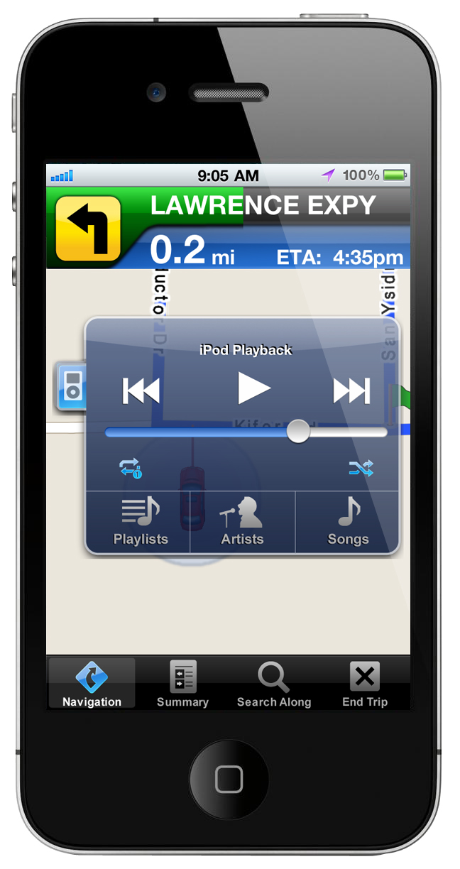 · iPod Control – TeleNav GPS users can play their favorite songs while navigating, using enhanced, in-app iPod controls with the ability to search through songs, artists, or playlists from within TeleNav GPS.