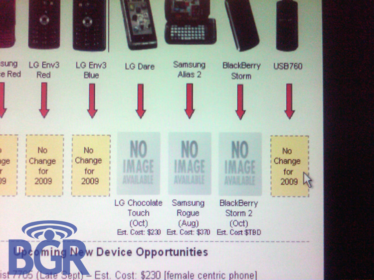 Nothing like a leaked carrier roadmap to whet the upgrade appetite, and going by the Boy Genius Reports' slice of Verizon's not-too-distant future there'll be plenty of CDMA handsets on offer to those bored with their current phone. As well as a fair sized dollop of BlackBerry detail, there's also a splash of Android and some feature-phones to be had too.