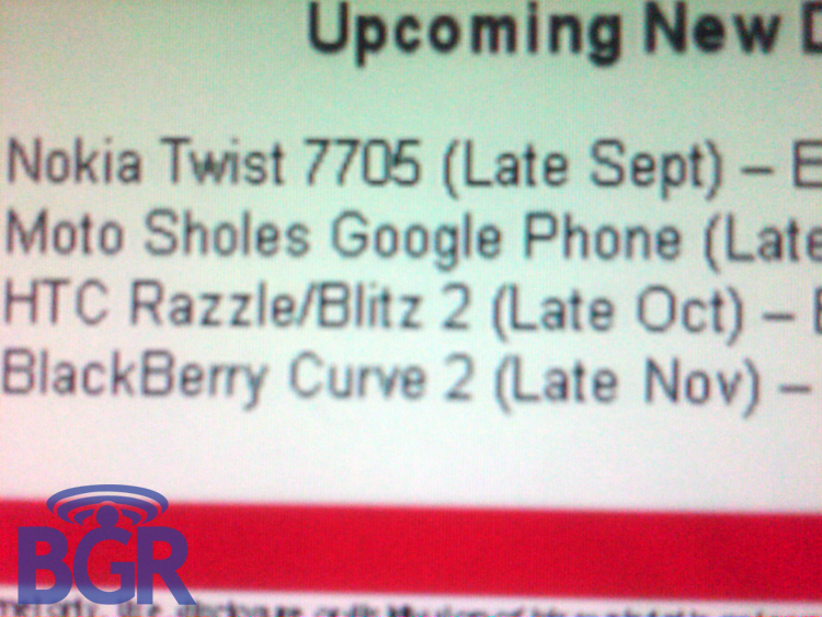 Verizon Roadmap Leak Tips Sholes In October, Curve 2 In November