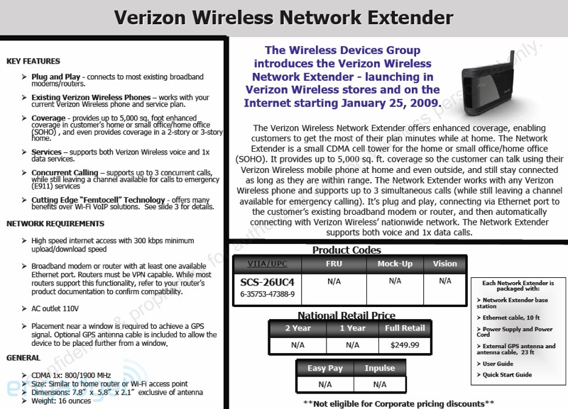 Verizon Wireless Network Extender Femtocell Coming January 25th For $250