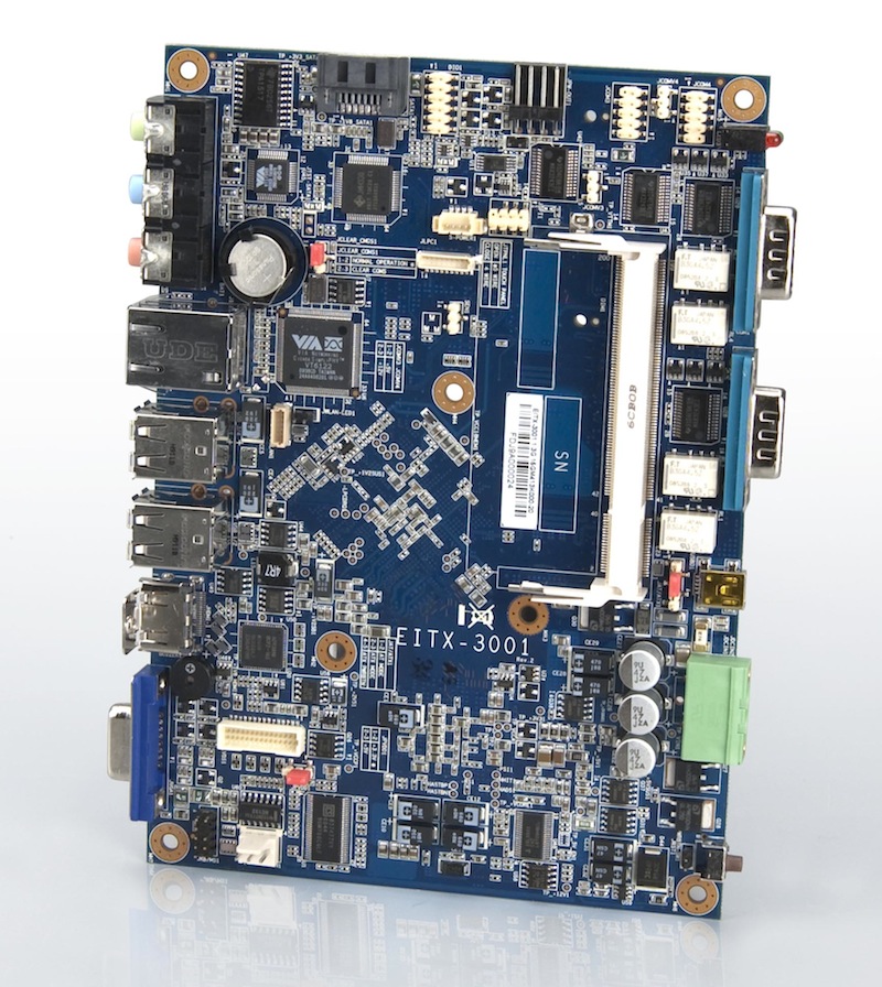 The VIA EITX-3001 is powered by a 1.3GHz VIA Nano E-Series processor, bringing a performance optimized, 64-bit architecture to today's modern embedded applications. The VIA EITX-3001 also takes advantage of the VIA VX855 media system processor, a feature packed all-in-one digital media chipset that brings excellent hardware acceleration for the latest HD video formats including MPEG-2, H.264, VC-1 and WMV9.