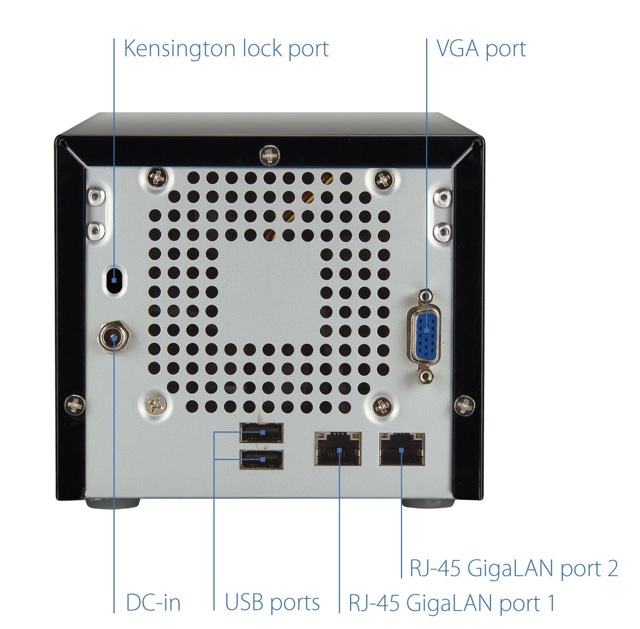 Connectivity includes dual Gigabit Ethernet ports while two USB 2.0 ports at the back are supplemented by one port at the front allowing easy accessibility for USB peripherals such as flash drives or memory card readers.