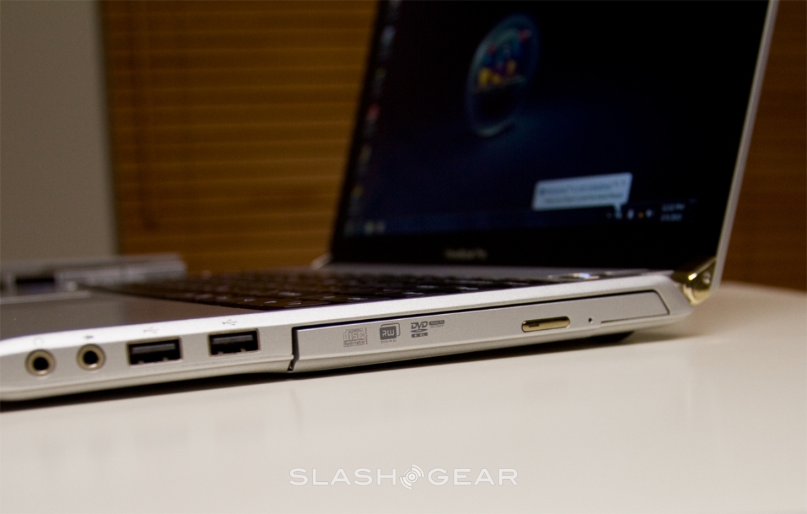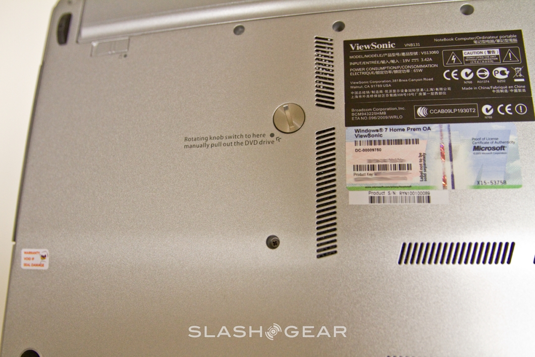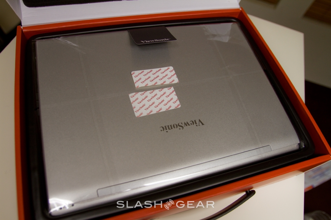 Measuring in at 12.67 x 9.4 x 1.0 inches it's nicely portable, certainly. Ports include two USB 2.0, HDMI and VGA, 10/100 ethernet, audio in/out and a 7-in-1 memory card reader, and there's a removable, tray-loading DVD burner too. Pull that out and replace it with the secondary battery, and Viewsonic reckon you can have up to 12hrs runtime.