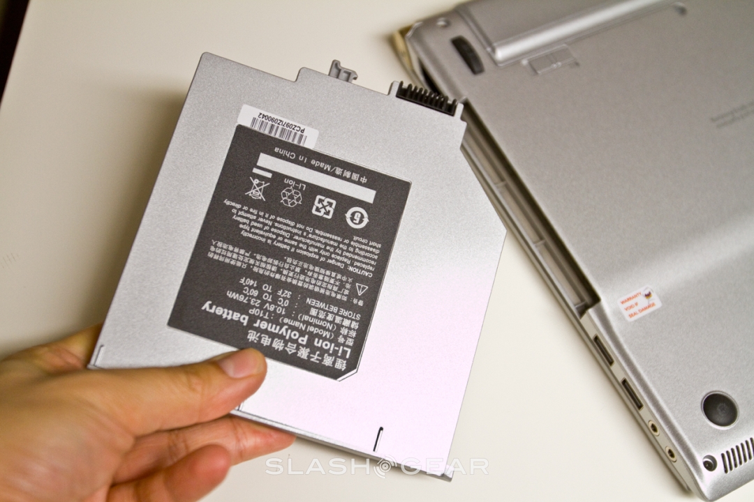 As for battery life, while Viewsonic's predictions were over-ambitious, the VNB131 still showed decent longevity. On the primary battery alone – which the company rates for up to 8hrs use – we managed 6.5hrs of regular use; adding the second battery – which they say boosts runtime by 4hrs, at the expense of the optical drive – took that total to 9.5hrs. That's obviously short of Viewsonic's 12hr estimate, but still enough for a solid day's work with some to spare, and the fact that they include the secondary pack as standard is admirable.