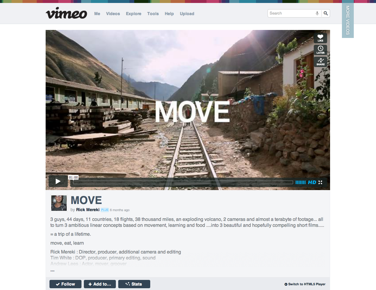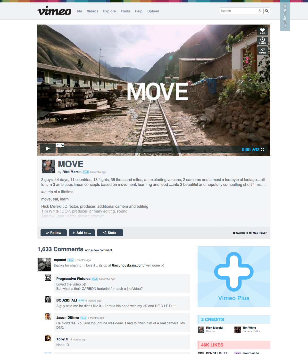 Online video site Vimeo has revamped its site, with a full redesign that boosts clip size, streamlines navigation, adds to privacy options and ensures streaming content loads quicker. The site – which has found favor among digital creatives for its support for high-quality source files – now allots twice the width for videos, but also makes discovering new clips more straightforward thanks to a pull-down discovery bar and a "Related Videos" recommendation engine.