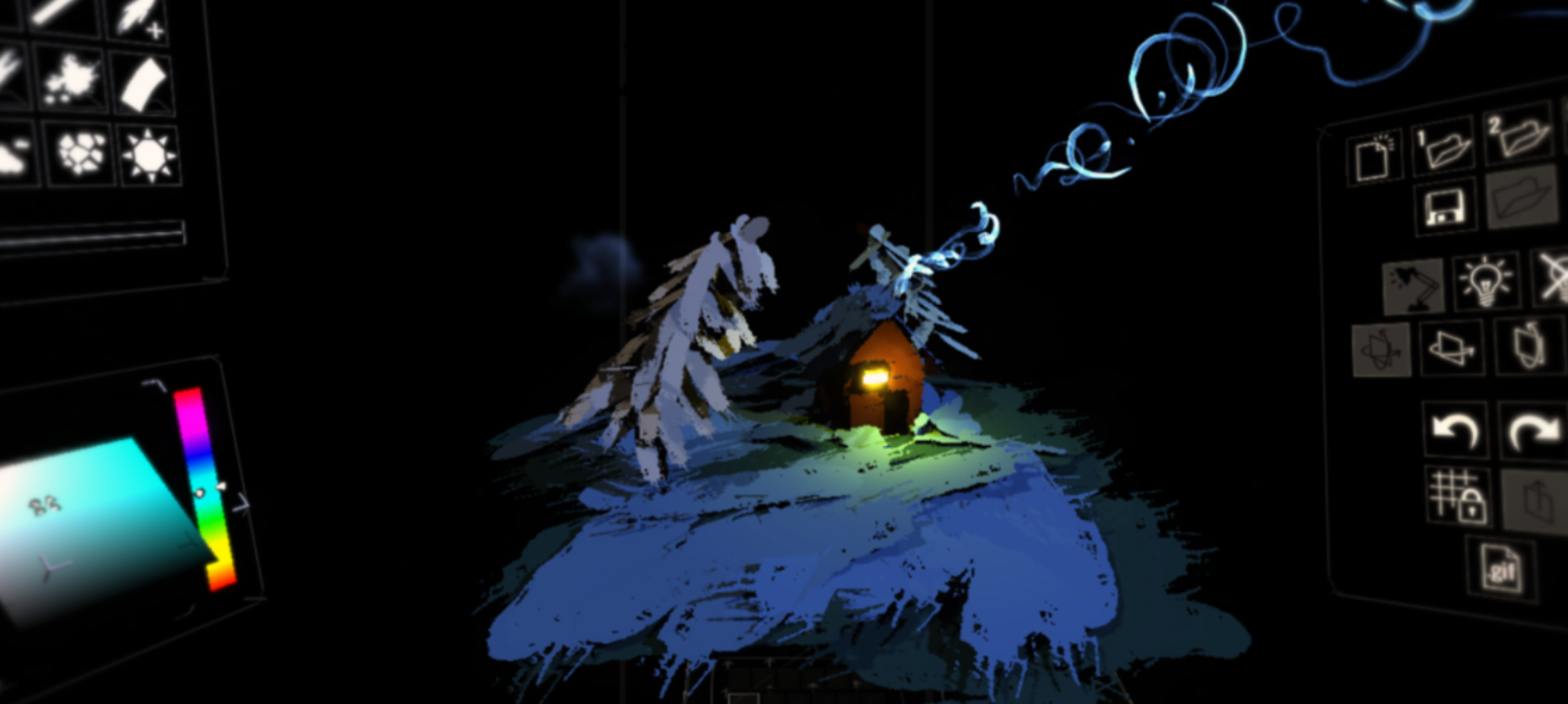 Inside virtual reality you can create whatever you want to see and whatever environment you'd like to exist in. One fabulous example of a creation app that's ready for testing today on a limited basis with the Oculus Rift is "Tilt Brush." This app allows you to effectively sculpt with paint – flat, yet 3D.