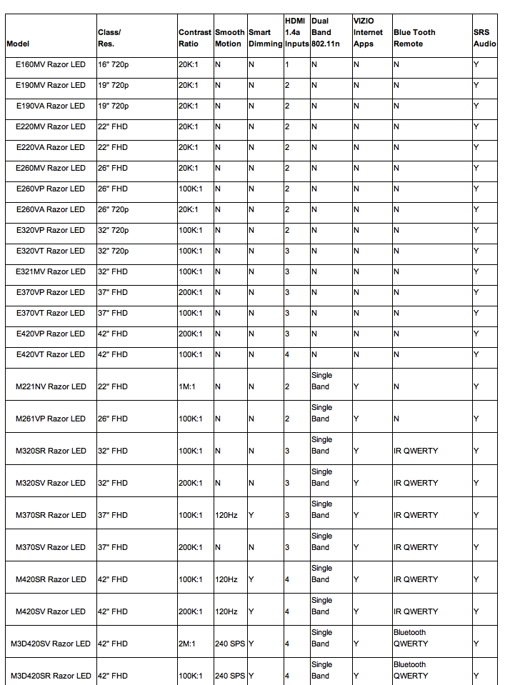 VIZIO continues to embrace its leadership in the LED LCD TV marketplace, not only being the #1 brand in sales, but also the brand in features, technologies and performance. The new LED lit models will become available starting this spring.
