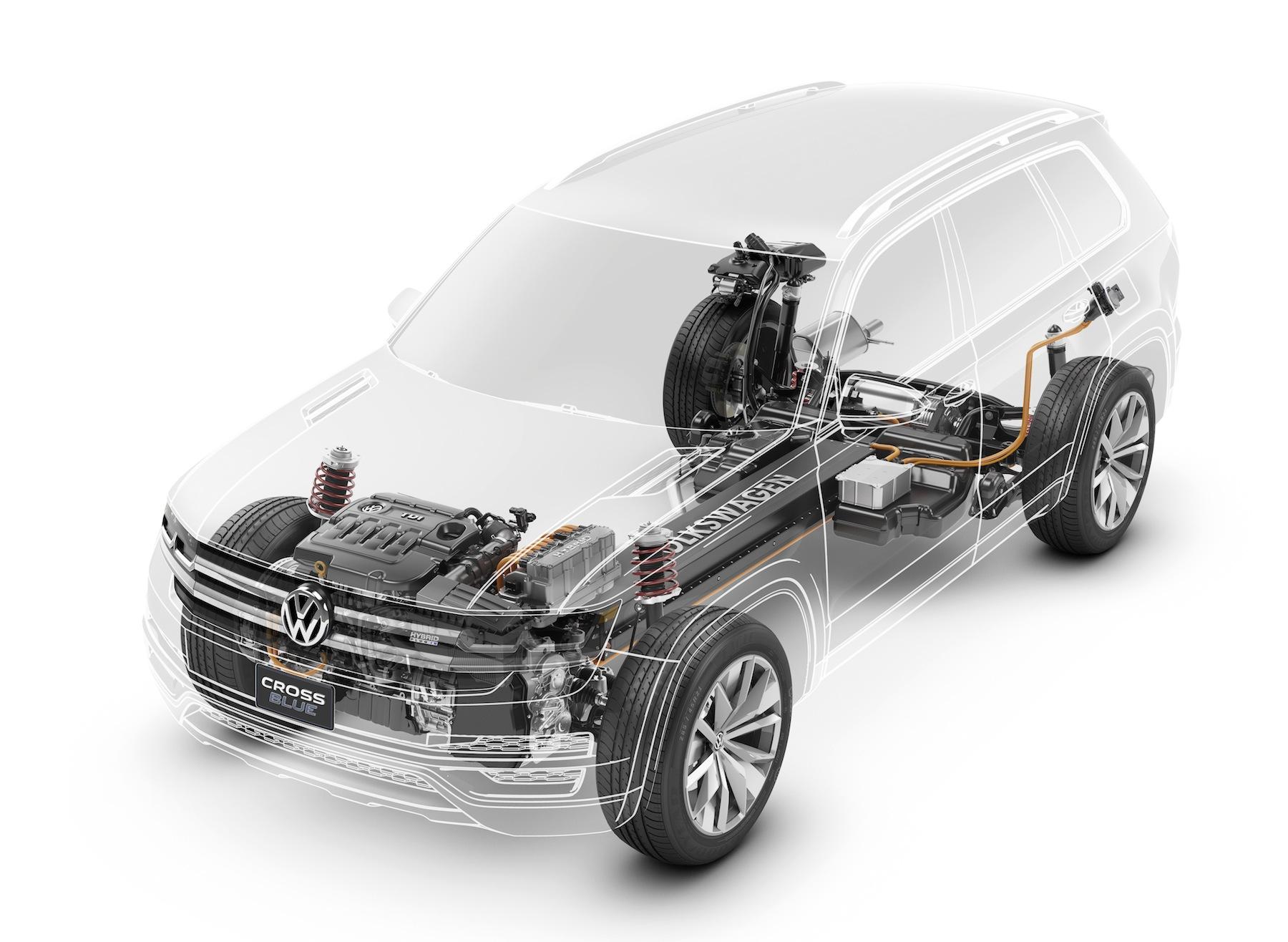 It's what's under the hood that's likely most important, however, for Volkswagen's mid-sized SUV plans in North America. A combination of the new Modular Transverse Matrix (MQB) front and rear suspension, and the 190HP TDI Clean Diesel engine, paired with the twin electric motors pushing out 133 lb-ft at the front and 199 lb-ft at the rear, and a Li-Ion battery hidden in the center tunnel, the company says there's a good chance they'll show up in future SUVs.