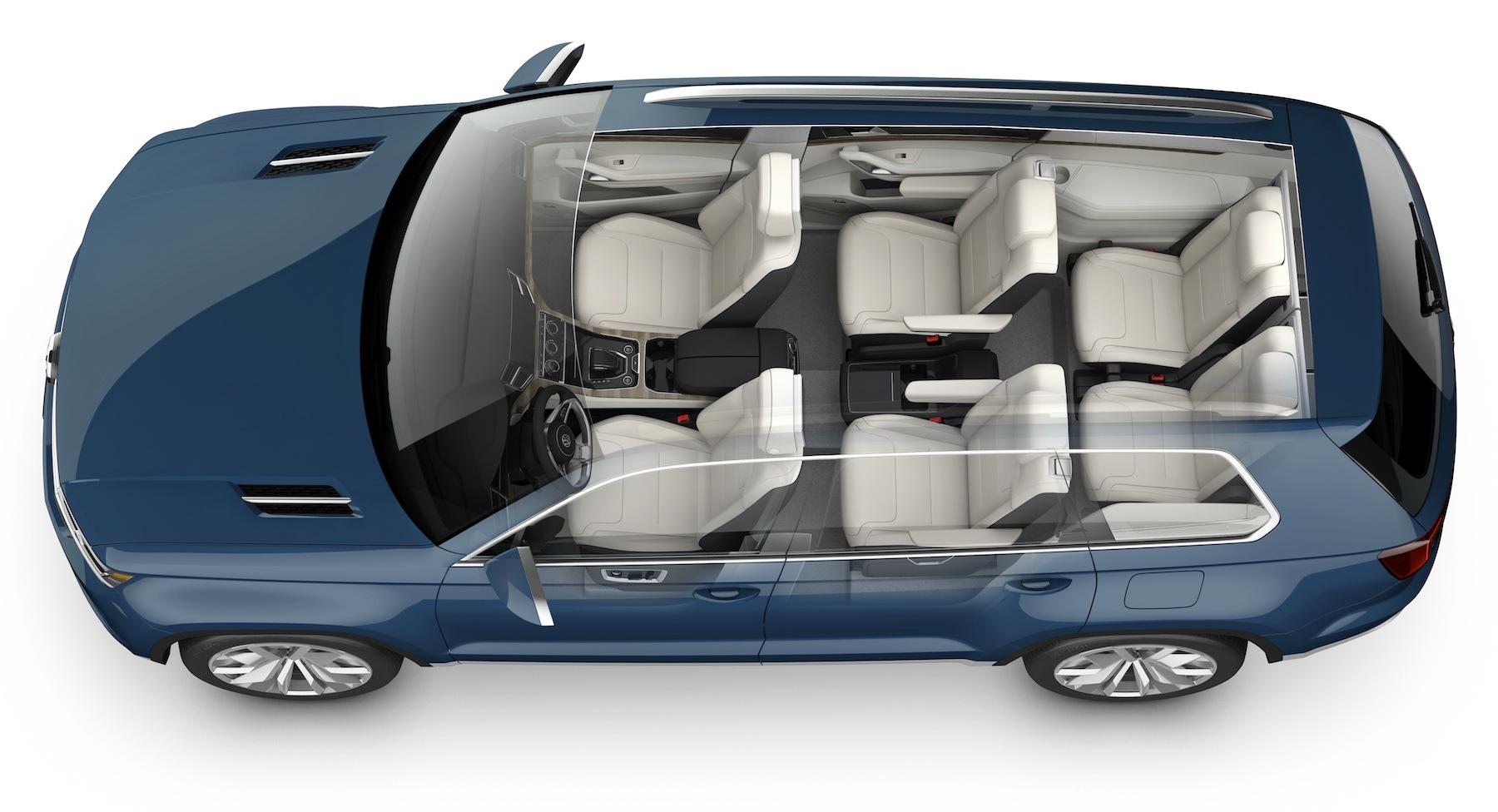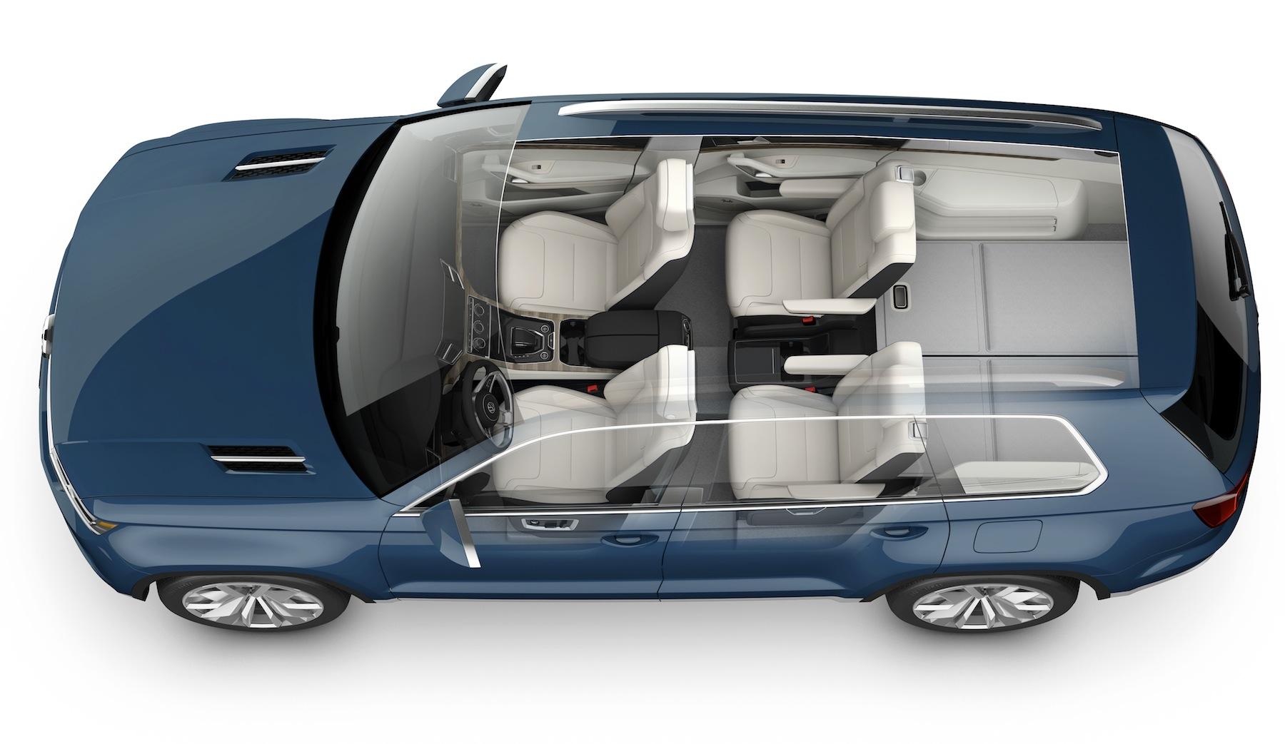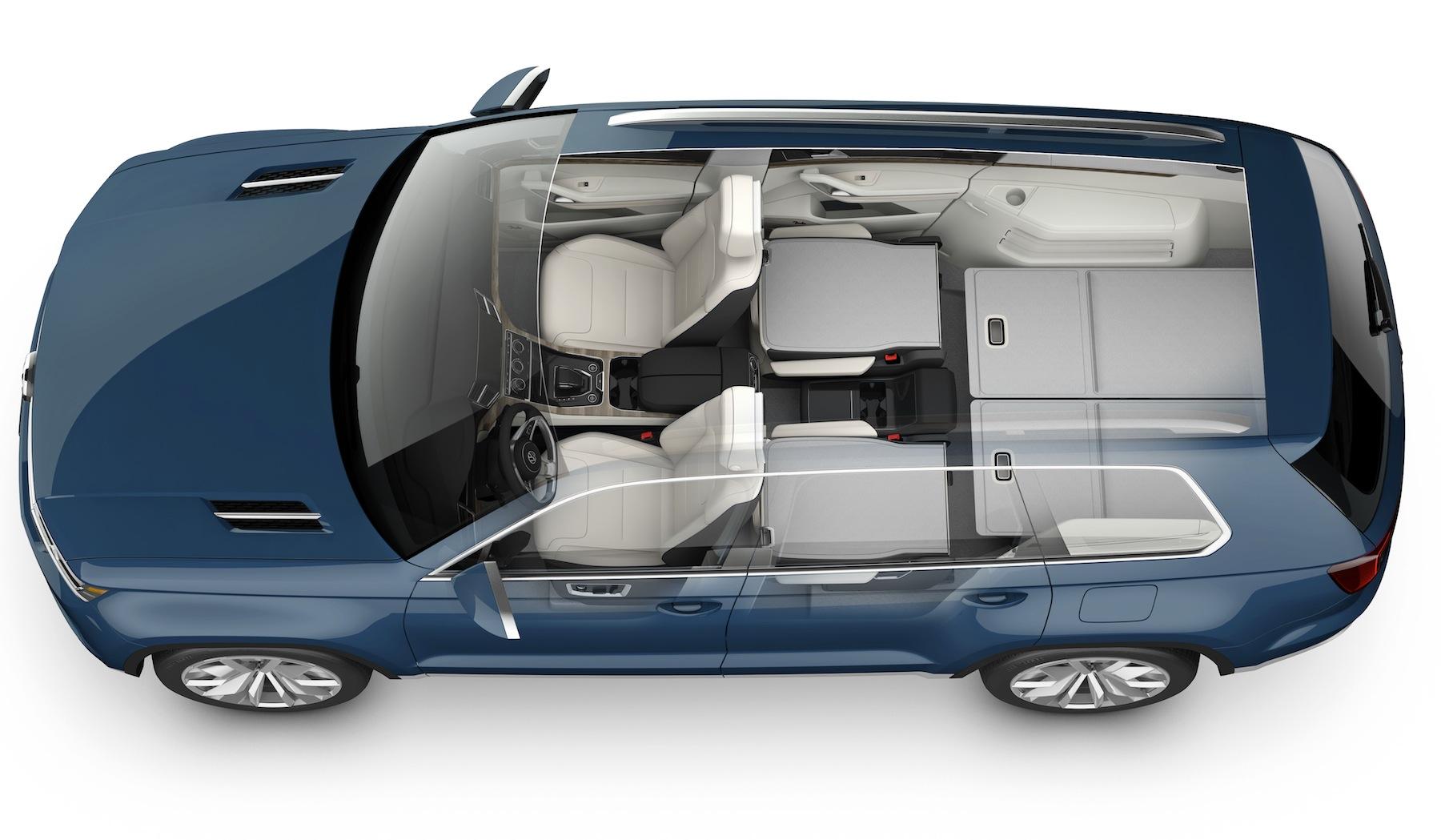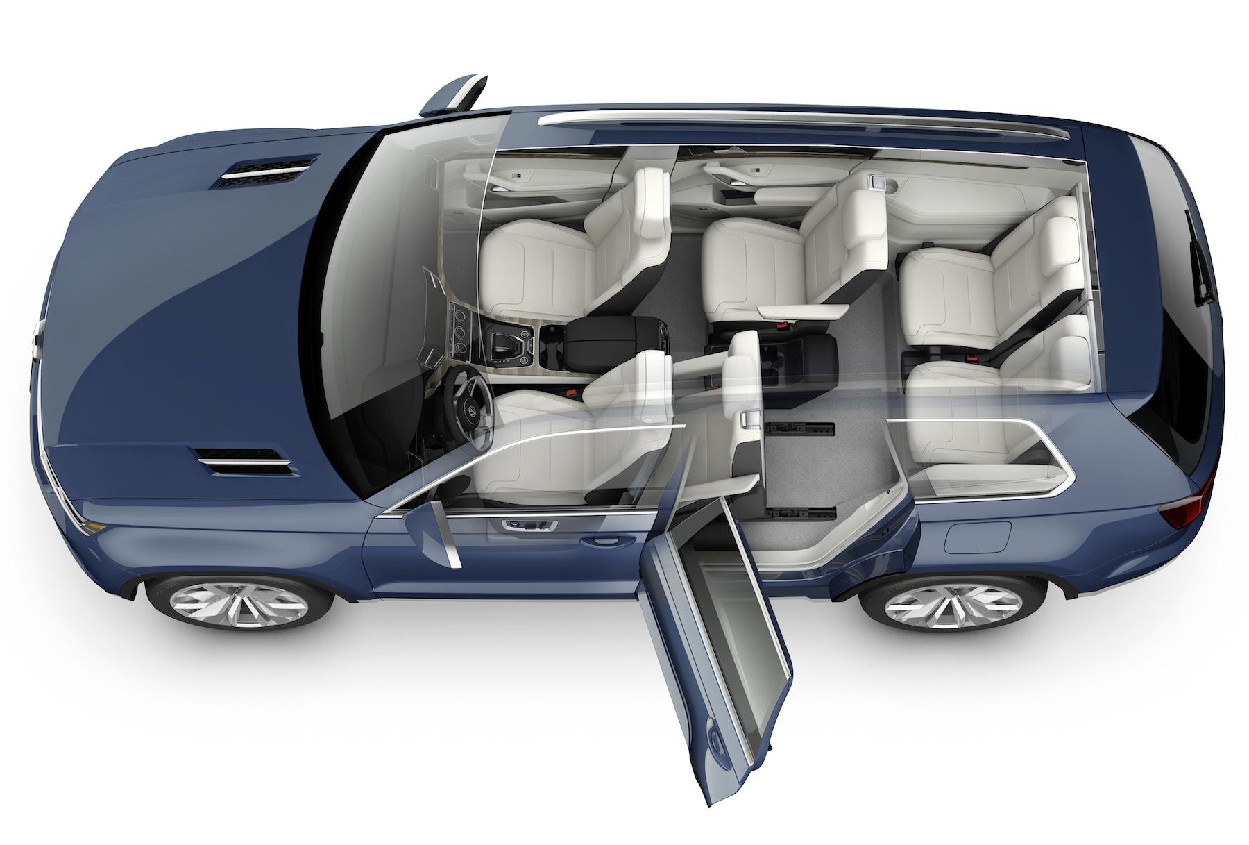 If it makes it to showrooms, Volkswagen says the production CrossBlue would likely have a trio of seats in the middle row, making for seven altogether. The eye-catching 21-inch alloys would probably get smaller, too. No word on when that might happen, nor how much it would be, though the company predicts it would fall in-between the Tiguan (from $23k) and the Touareg (from $43k).
