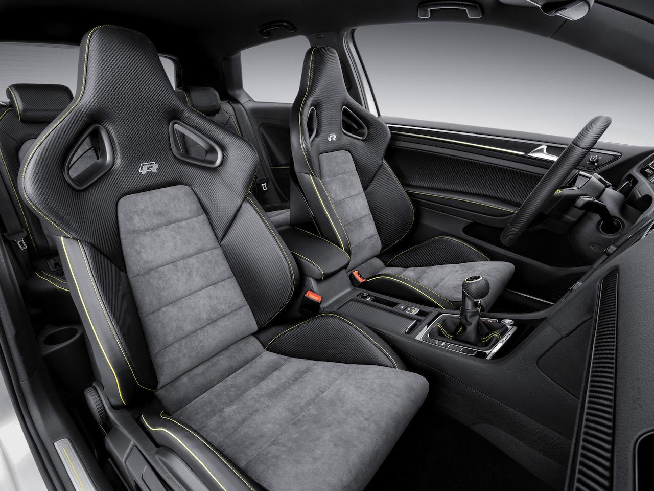 Outside, there's a 20mm wider body than the Golf R it's based on, with the flared arches giving the 19-inch, 235/35 R19 alloys room. A carbon-fiber splitter is at the front, and twin 110m tailpipes at the back.