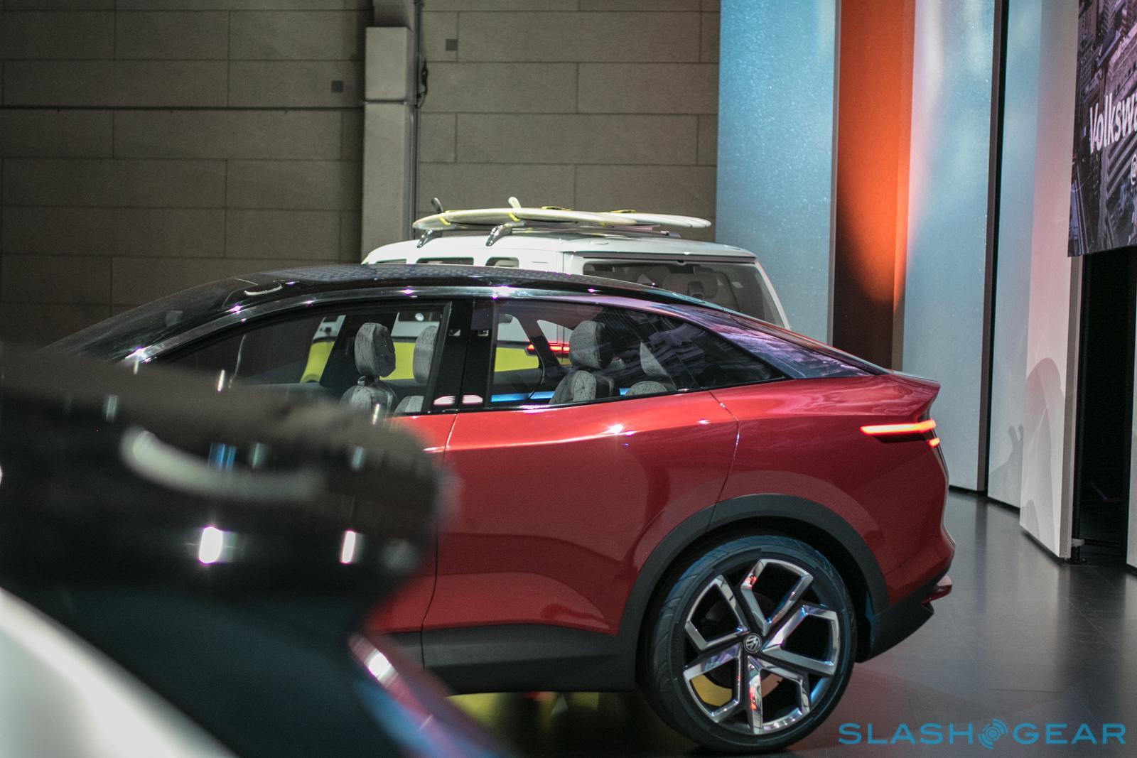 The underlying 4MOTION all-wheel drive system seems likely to carry over to the production car. At the front there's a 101 HP electric motor driving the front wheels; a 201 HP version drives the rear. Normally, it's RWD, but the crossover can push power to the front when traction demands it. VW says the battery should be good for up to 300 miles of range and, if you have a 150 kWh DC charger, it'll go from zero to 80-percent charge in just 30 minutes.
