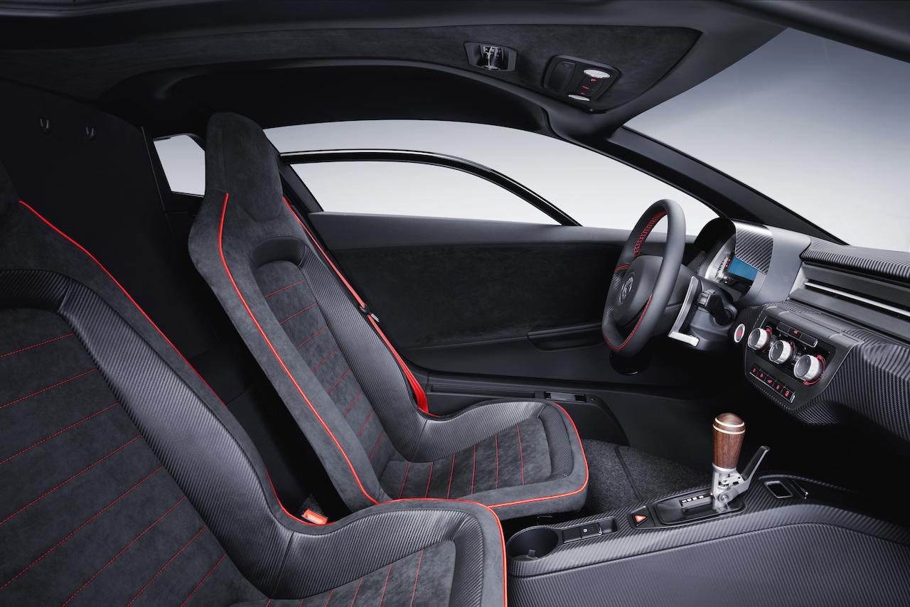 Helping that dash is the super-slippery design, with a 0.258 coefficient of drag. Special vanes on the front help guide the air around the car while still ensuring maximum cooling, along with a covered underbody, air ducts in the hood and hatch, and even an extendable rear spoiler that's powered with the mechanism from the Lamborghini Aventador.