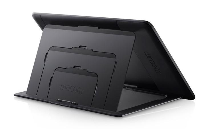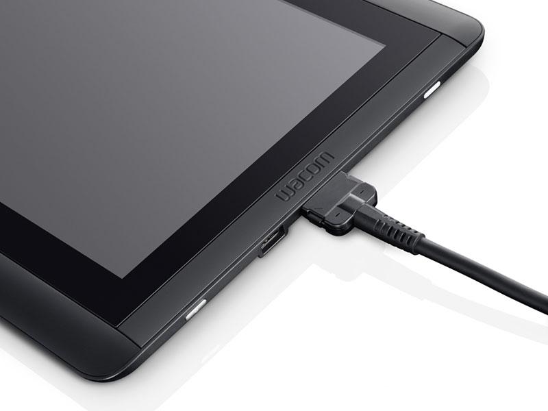 As well as detaching the stand to use the new baby Cintiq in your lap, you can prop it up at one of three angles – 22-, 35-, and 50-degrees – and a regular USB 2.0 data connection is included in the three-in-one cable which also handles display signal and power.