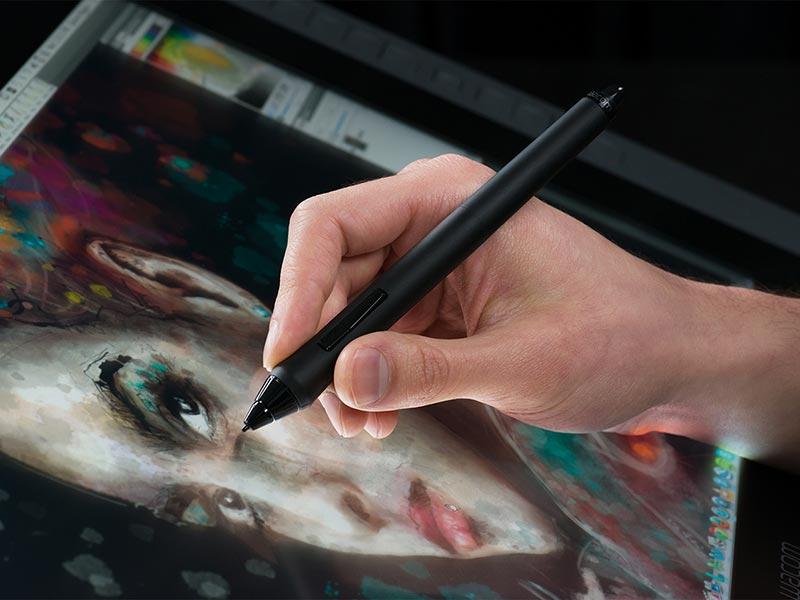 Spread around the bezel there are multiple shortcut buttons, with a total of sixteen customizable ExpressKeys – that can change function depending on which application has focus – on either side of the display. Touch-strips, meanwhile, are on the back of the panel, and can be programmed to control zooming, scrolling, bruss size, or rotation of the canvas.