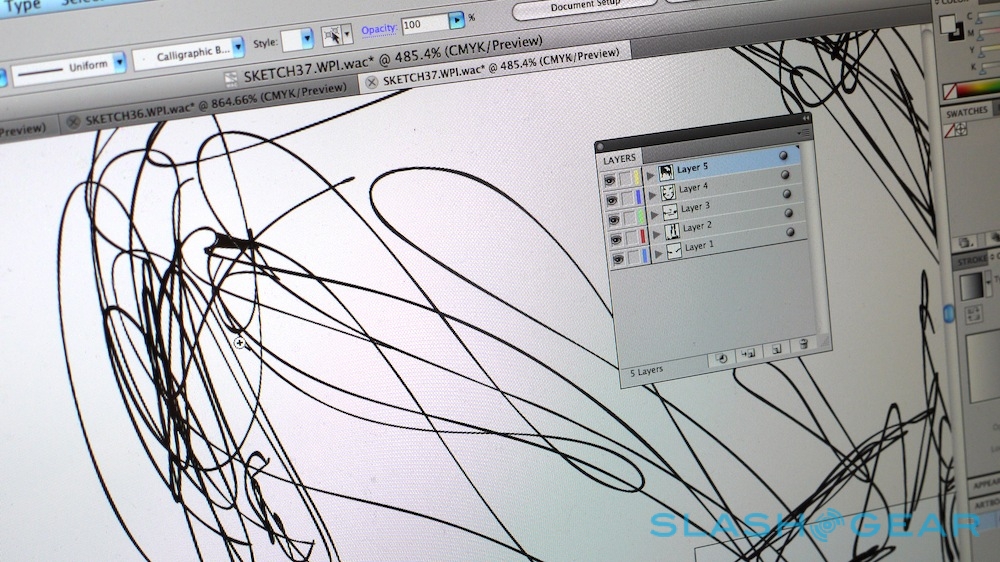 From there it's a case of exporting to one of the supported apps – Photoshop and Illustrator are the most likely candidates (both CS3 or later), but Autodesk SketchBook Pro and SketchBook Designer (2011 or later) are possible too – whereupon all the layer information is carried over and you can edit, color and generally tweak as normal. Quality is surprisingly high, with smooth curves even at high levels of zoom.