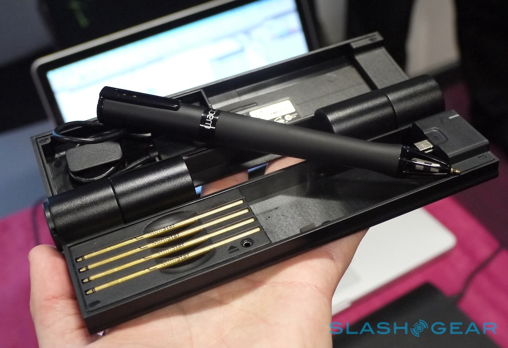 It's not entirely perfect. The included carry-case/charging box feels a bit thrown-together, though it does at least have space for the (standard) black ink refils, USB cable, both receiver and pen, and allow you to charge each from a single USB hook-up. Wacom tells us that this is still pre-production hardware, so things will hopefully be more sturdy by the time the Inkling hits shelves.